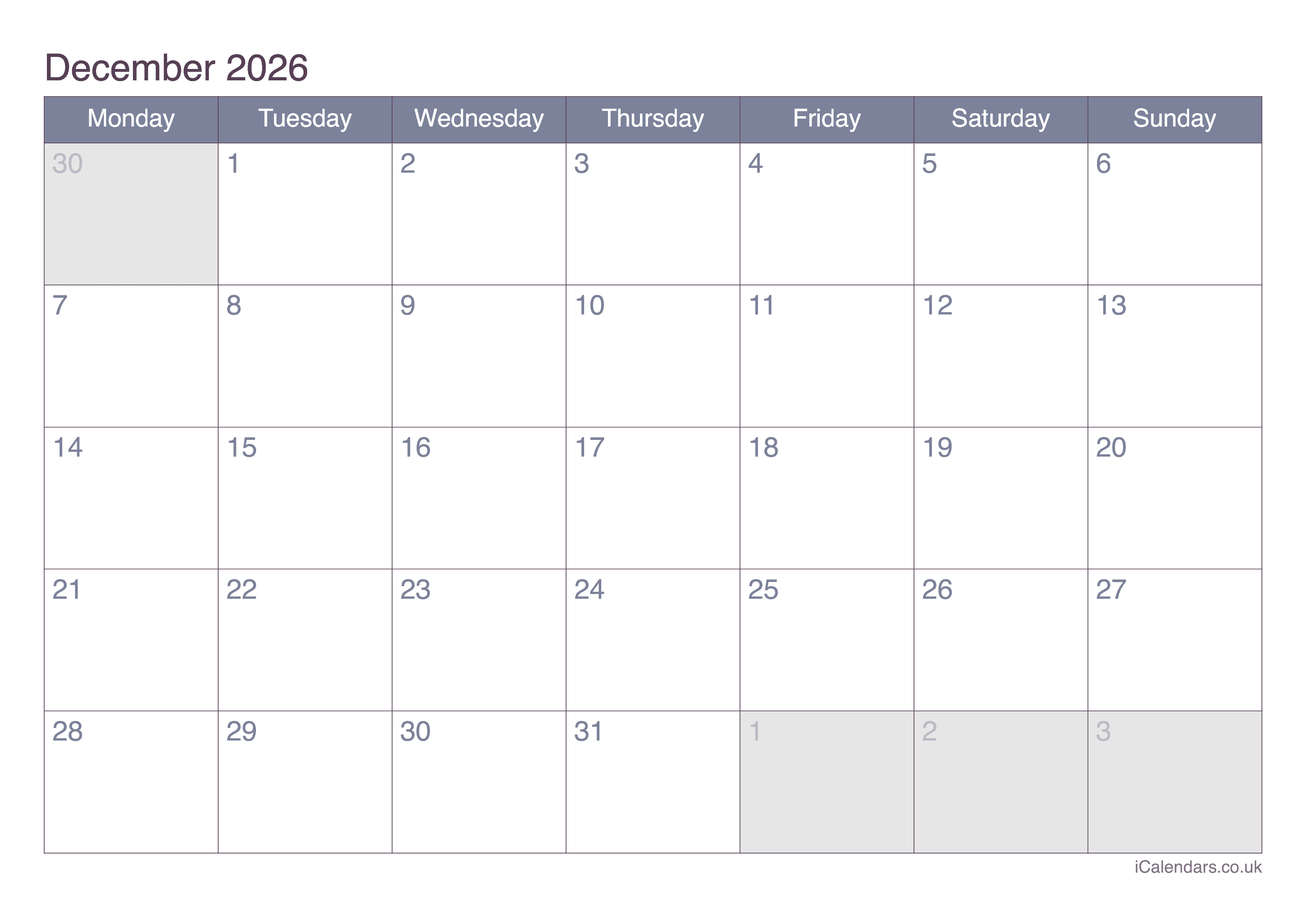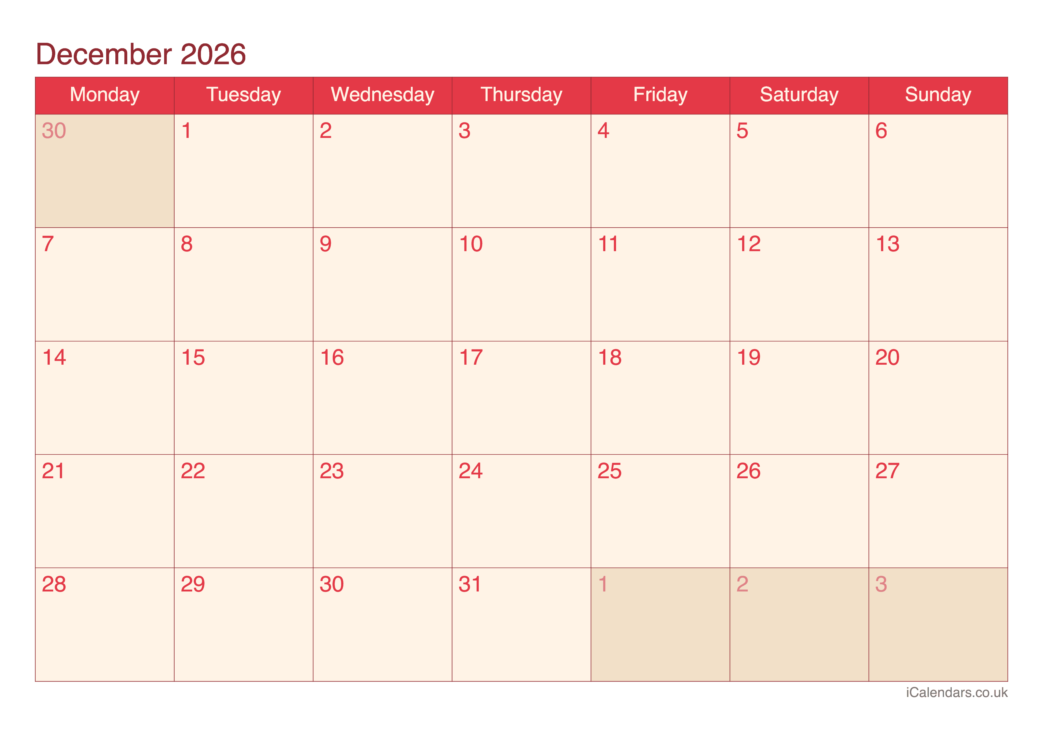 You can download and print this December 2024 calendar. It is available as an image, or in PDF and Excel formats. You can choose one of the 4 colour themes.