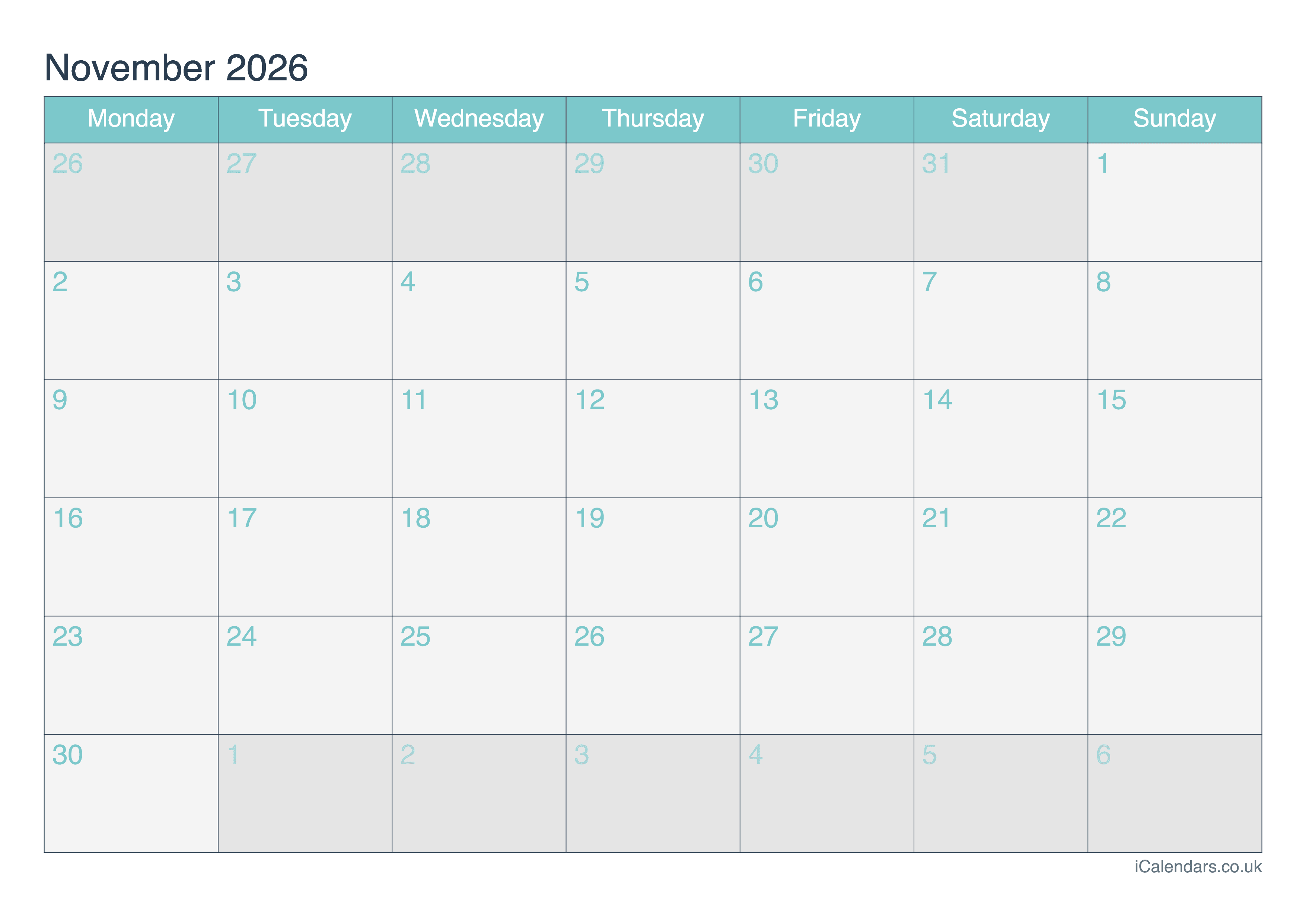 You can download and print this November 2024 calendar. It is available as an image, or in PDF and Excel formats. You can choose one of the 4 colour themes.